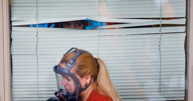 Сотрудник клиники в боксе для зараженных коронавирусом в американском Киркленде, штат Вашингтон. Фото: Reuters