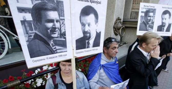 Участники акции протеста в Минске требуют расследовать исчезновение Анатолия Красовского и Виктора Гончара (16 сентября 2015 г.)