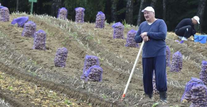 Президент Беларуси Александр Лукашенко во время уборки урожая картофеля, август 2017 года