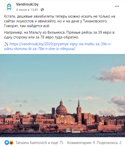 Проект Vandrouki.by пошутил в соцсетях, что теперь дешевые авиабилеты теперь можно искать не только на сайтах лоукостов и авиасейлз, но и на даче у Тихановского: