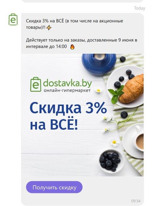 E-dostavka.by предложила скидку на всё, заказанное 9 июня до 14 часов: