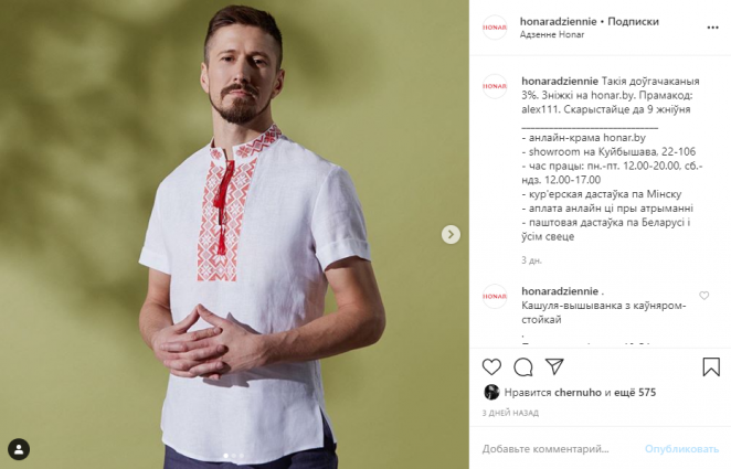 Бренд одежды Honar объявил о "долгожданной скидке в 3%" до 9 августа по промокоду alex111: