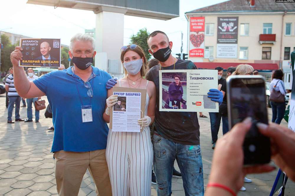 Одна из участниц встречи попросила Бабарико («если мы вас изберем») не забыть о других — Цепкало и Тихановской.