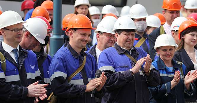Работники ОАО "Гродно Азот", 16 июня 2020 года. Фото: president.gov.by