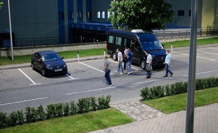По присутствию на банковской автостоянке микроавтобуса без номеров и фирменной символики нетрудно было догадаться, кто приехал в гости к правлению «Белгазпромбанка». Фото tut.by