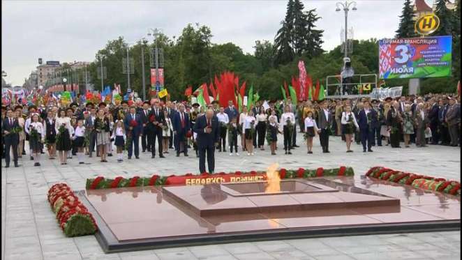 — Здесь, на этом священном месте мы отдаем дань памяти героям, которые сражались за нашу землю и приближали день Великой Победы. В годы Великой Отечественной войны белорусский народ сделал исторический выбор — поставил свою свободу тогда выше своей жизни. Другого выбора и не могло быть у потомков древнего славянского народа — сильного, гордого и независимого. Народа, который никогда и никого не порабощал. Народа, который сам никогда не был рабом.