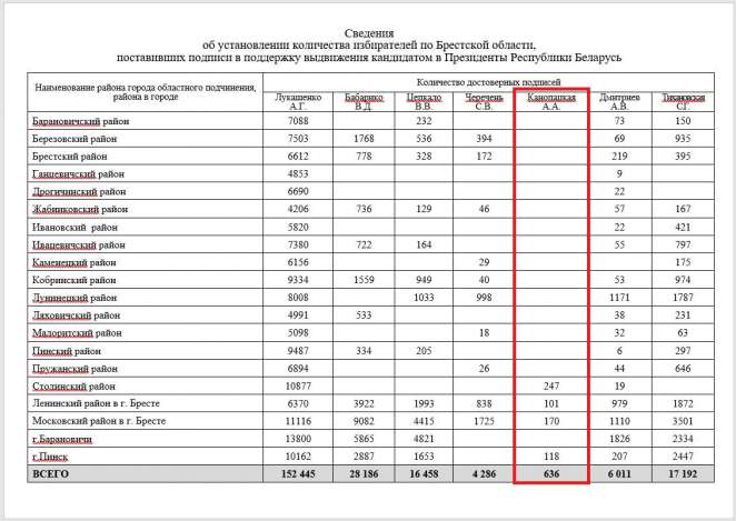 Вспоминаю заявленную лютую цифру в три тысячи подписей только за один день на трех пикетах Канопацкой в Бресте. Открываем данные Брестской областной. 271 подпись.