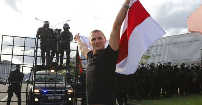 «Поскольку бело-красно-белый флаг стал флагом всеобщего протеста, а не только национально ориентированных политических сил, то перед правоохранительными органами встал вопрос использования флага частными лицами, что не запрещено и не подпадает ни под какие статьи. Так же и люди, которые придумывают флаги микрорайонов, не делают ничего запрещенного. Люди имеют полное право вывешивать флаги на балконах, размещать их изображения на майках», — объясняет Чаусов.
