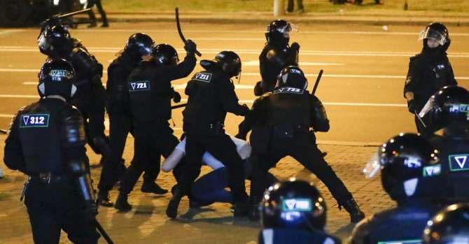 Разгон демонстрантов силовиками 10 августа в Минске