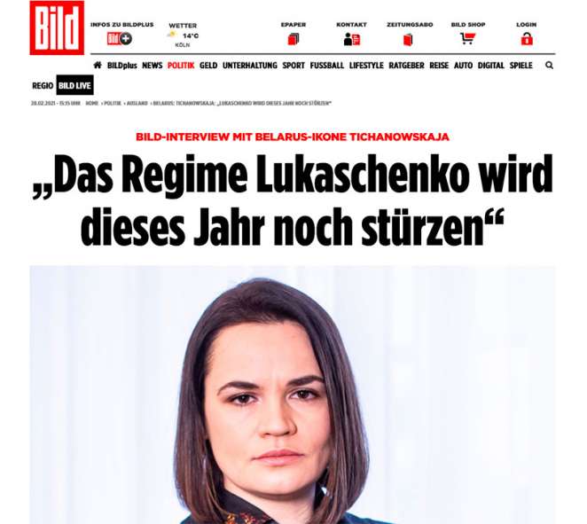 Экс-кандидат в президенты Светлана Тихановская в интервью немецкому еженедельнику Bild am Sonntag рассказала о перспективах смены власти в Беларуси.