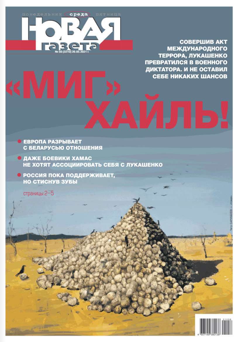 Так выглядит свежий номер российской Новой газеты, посвященной событиям, которые сейчас развиваются В и вокруг Беларуси.
