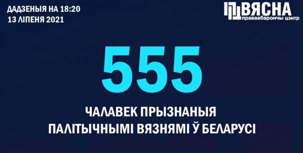 Плюс семь человек признаны политзаключенными в Беларуси - всего 555