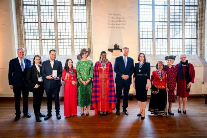 Светлана Тихановская с другими лауреатами премии, а также королем и королевой Нидерландов