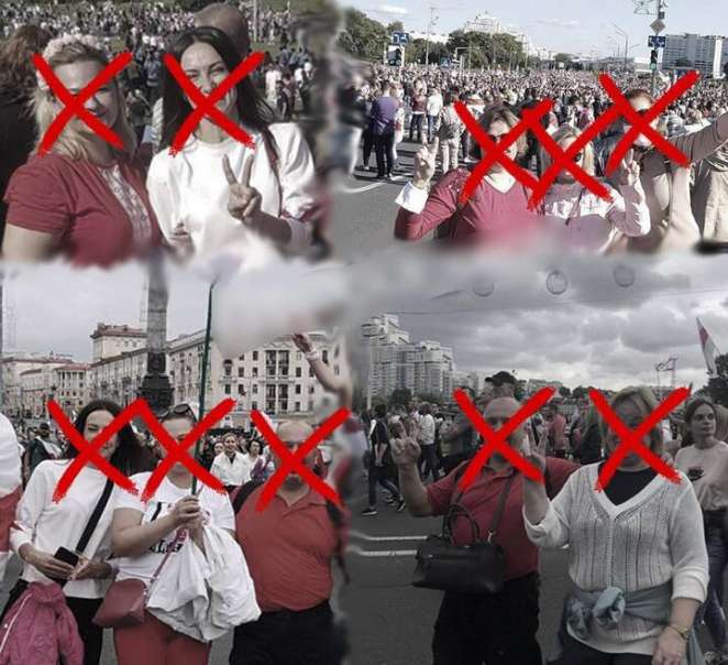 В таком виде, перечеркнув людей, силовики опубликовали фото задержанных с протестного марша