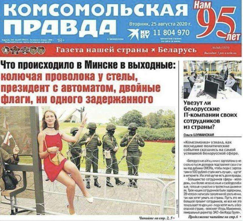 Это ее снимок был в августе 2020-го на первой полосе белорусской «Комсомольской правды».