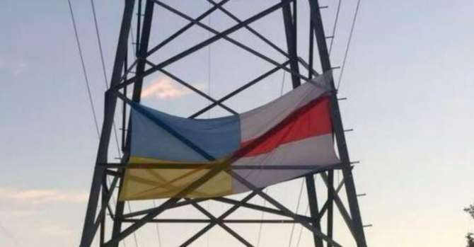 В начале октября в Московском районе Минска на опоре линии электропередачи вывесили БЧБ-полотно и флаг Украины.