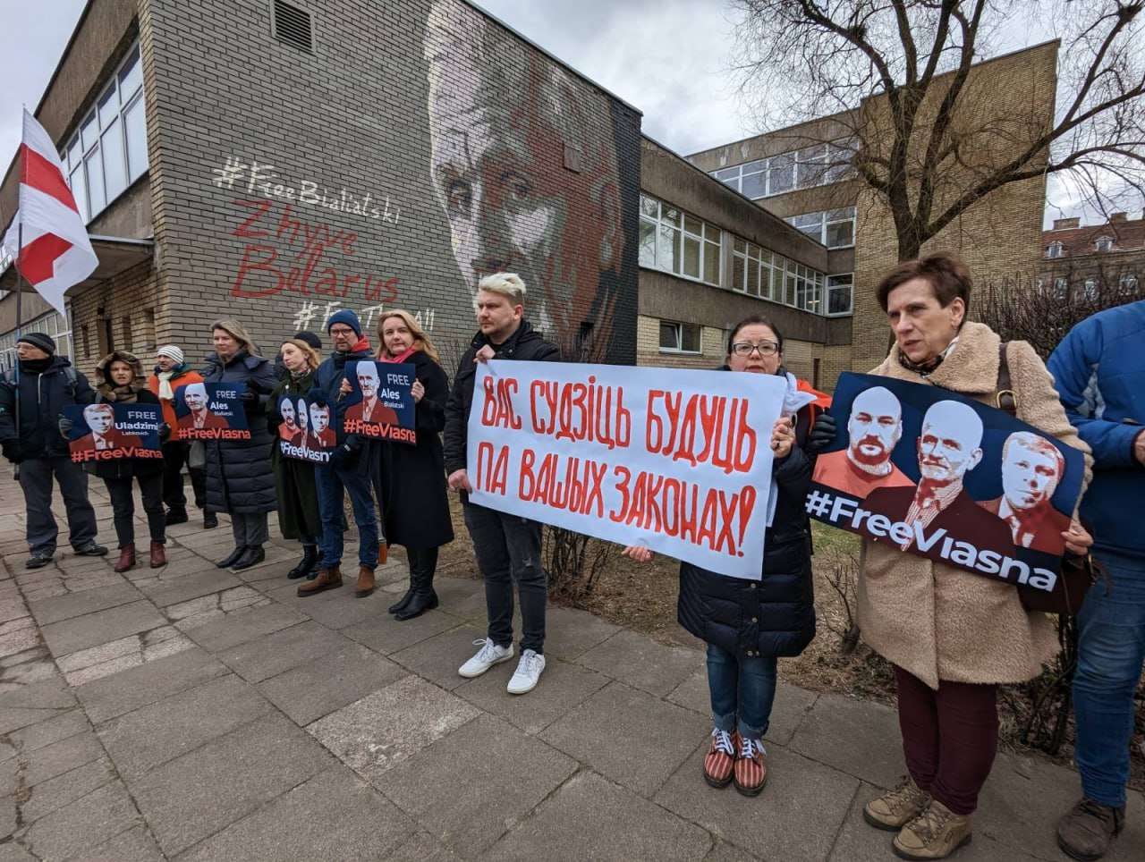 В Вильнюсе возле мурала, посвященного главе «В*сны», политзаключенному Нобелевскому лауреату Алесю Беляцкому, проходит акция солидарности.