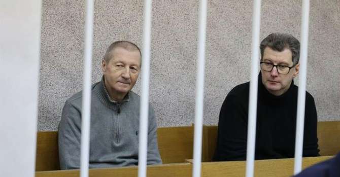 Виктор Ярошук (слева) и Сергей Антусевич, руководители Белорусского конгресса демократических профсоюзов, в суде