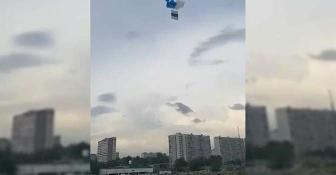 Бело-сине-белый флаг, запущенный Дмитрием и Юлией Головлевыми в Москве 22 мая. Скриншот видео