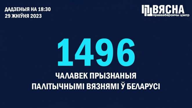 Правозащитники из «Вясны» 29 августа объявили о признании политическими заключенными еще семнадцати человек. Общее число политзаключенных в Беларуси сейчас составляет 1 496 человек.