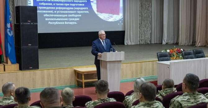 Встреча председателя ЦИК Игоря Карпенко с личным составом командования внутренних войск 17 октября 2023 года. Фото: ЦИК Беларуси