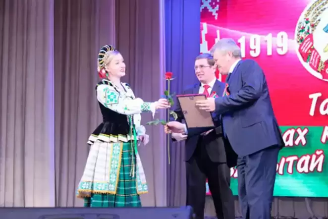 Владимир Тюхай (в центре) празднует 100-летие со дня основания БССР