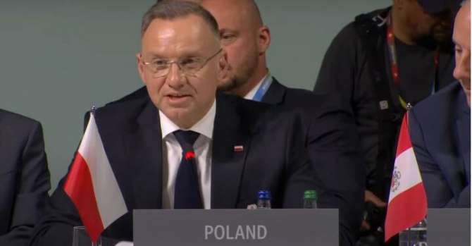Президент Польши Анджей Дуда выступает на Глобальном саммите мира 15 июня 2024 года. Бюргеншток, кантон Нидвальден, Швейцария. Скриншот видео.