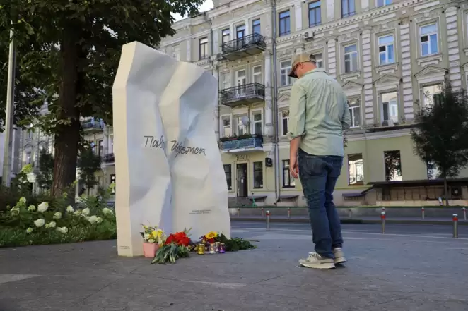 Фотофакт. К мемориалу Павла Шеремета в Киеве несут цветы