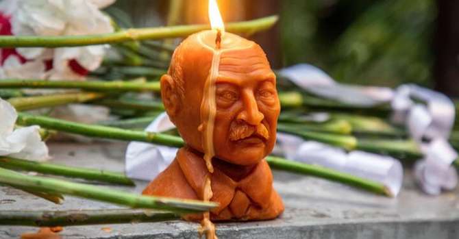 Свеча в виде Александра Лукашенко у здания посольства Республики Беларусь в Москве, куда люди приносили цветы в знак протеста объявленным официальным результатам выборов президента Беларуси, Москва, Россия, 16 августа 2020 года. Фото: Reuters