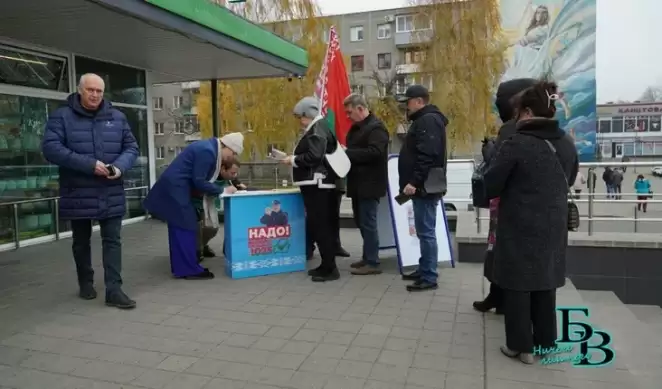 Так выглядит пикет по сбору подписей за Лукашенко