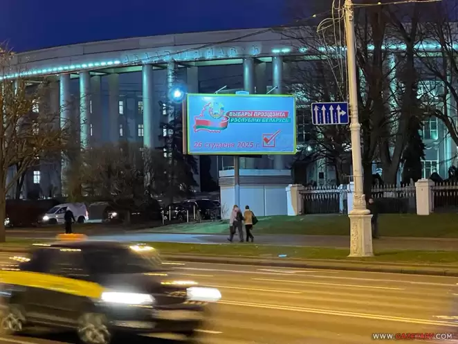 Тем временем, центр Минска вечером выглядит так. По обе стороны проспекта Независимости билборды о «выборах» – в буквальном смысле слова, на каждом шагу.