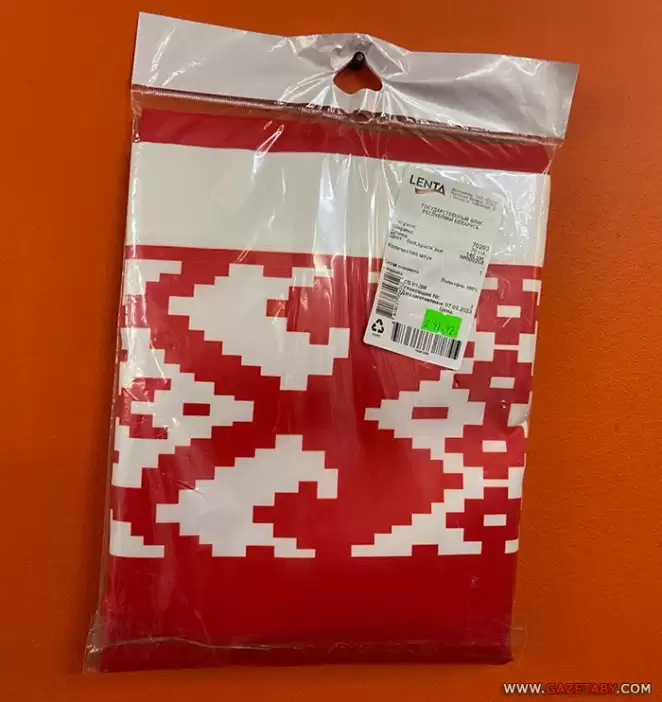 К примеру, красно-зеленый флаг размером 140 на 70 см, изготовленный могилевским ОАО «Лента», стоит 91 рубль 92 копейки.
