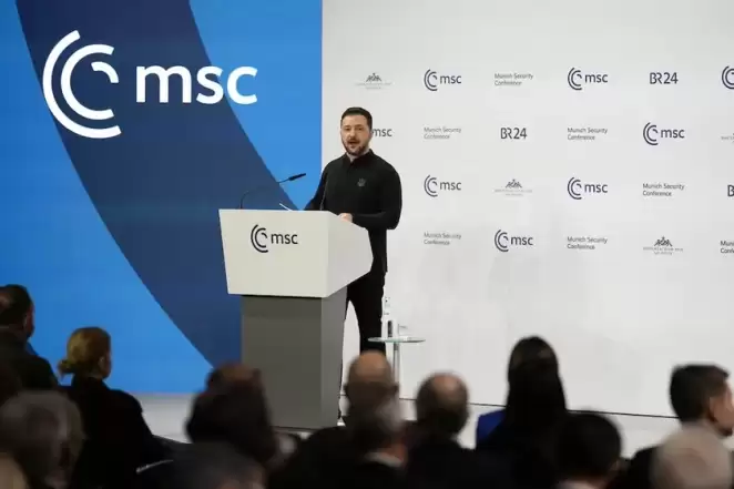 Президент Украины Владимир Зеленский начал выступление на главной сессии Мюнхенской конференции, передает корреспондент Би-би-си.