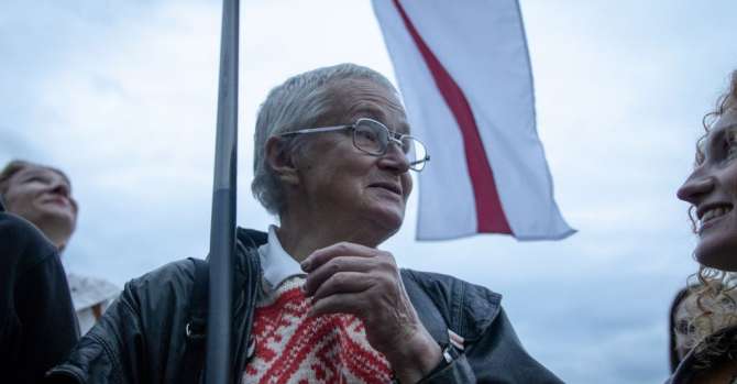 78-летняя Нина Багинская стала символом протестов 2020-го. Ее фотографии с национальным флагом в руках публиковались во многих зарубежных СМИ.