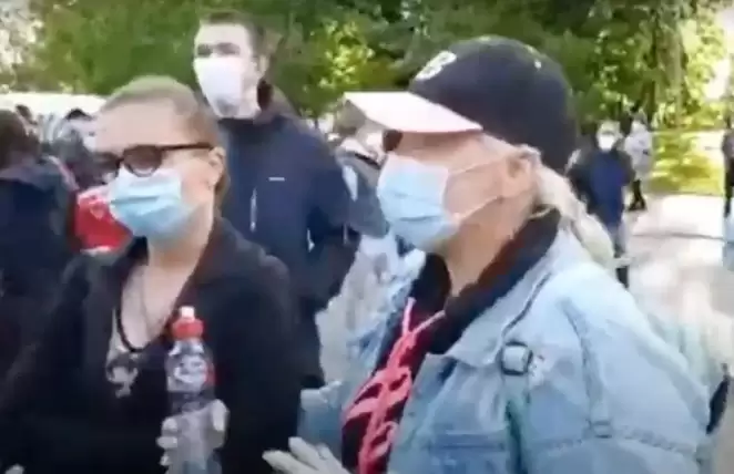 Сначала в кадре появились две женщины-провокаторши, которые требовали, чтобы Сергей Тихановский ответил на их вопросы. Блогер уходил от них, но они преследовали его.