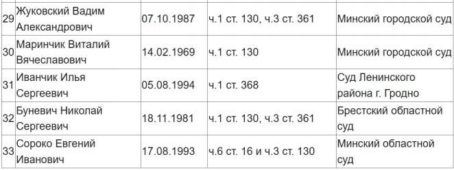На третьем — ст. 368 (Публичное оскорбление Лукашенко).