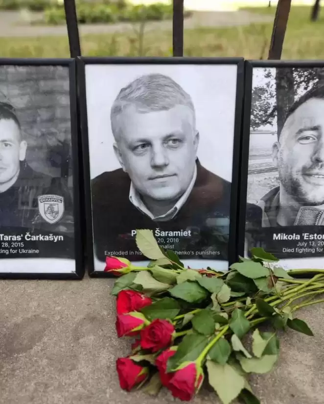 Портрет Павла Шеремета в печальной галерее у посольства Беларуси в Вильнюсе. Фото: Борис Горецкий, БАЖ