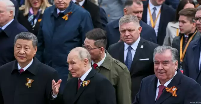 Лукашенко и Фицо присутствовали на параде в Москве 9 мая 2025 года. Фото: Yuri Kochetkov / Pool Photo via AP