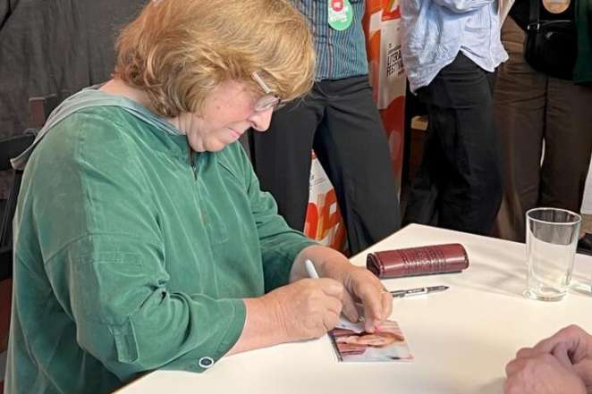 Зрители встречи со Светланой Алексиевич и соосновательницей российского «Мемориала» Ириной Щербаковой в Берлине, 13 сентября 2025 года. Фото: DW Беларусь