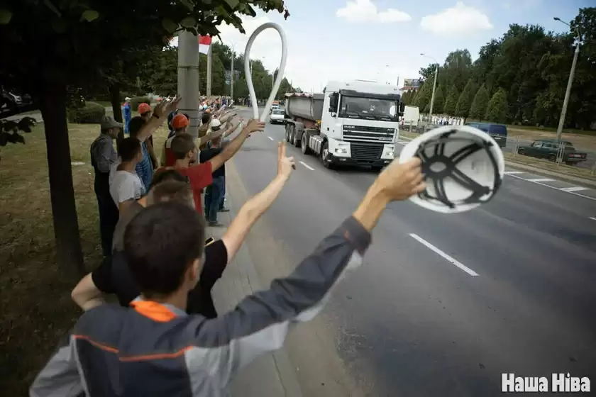Рабочие протестуют на улице Минска, август 2020-го. Фото: «Наша Ніва»