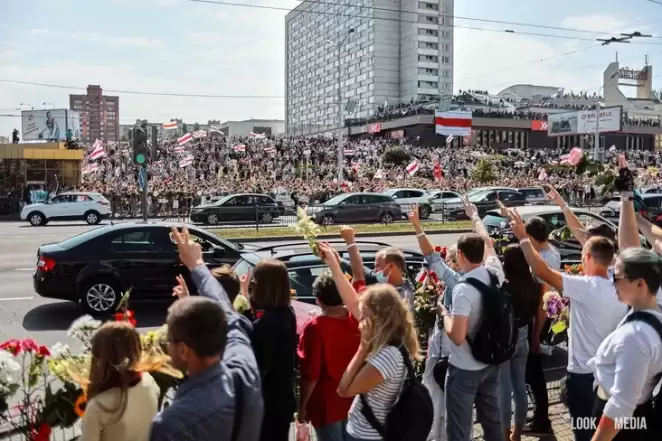 Люди пришли проститься с убитым на проспекте Притыцкого демонстрантом Александром Тарайковским, 15 августа 2020-го. Фото LookByMedia
