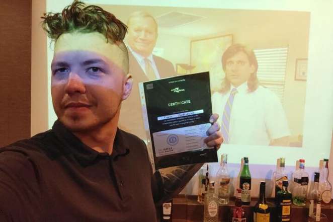 Роман Протасевич с дипломом бармена, 13 июля 2025 года. Фото: t.me/personal_protas
