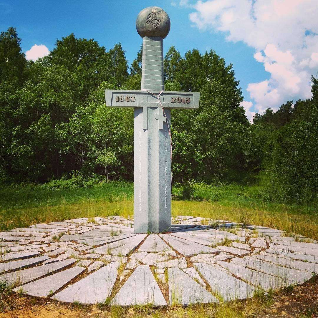 Памятник был установлен в 2013 году в честь 150-летия восстания под предводительством Кастуся Калиновского. На кресте был выгравирован повстанческий пароль «Каго любіш?», а рукоятку украшал герб «Пагоня».