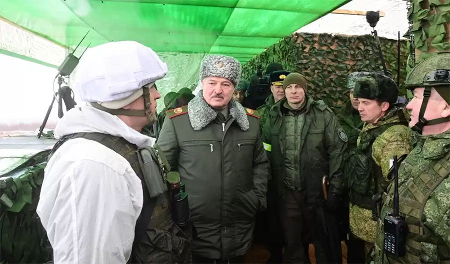 Лукашенко на учениях с российскими военными за несколько дней до вторжения в Украину, февраль 2022-го