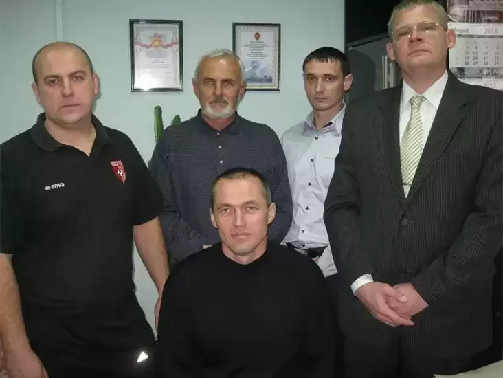 Иван Качайло с коллегами. Иван — крайний с правой стороны. Фото: mazyr.by