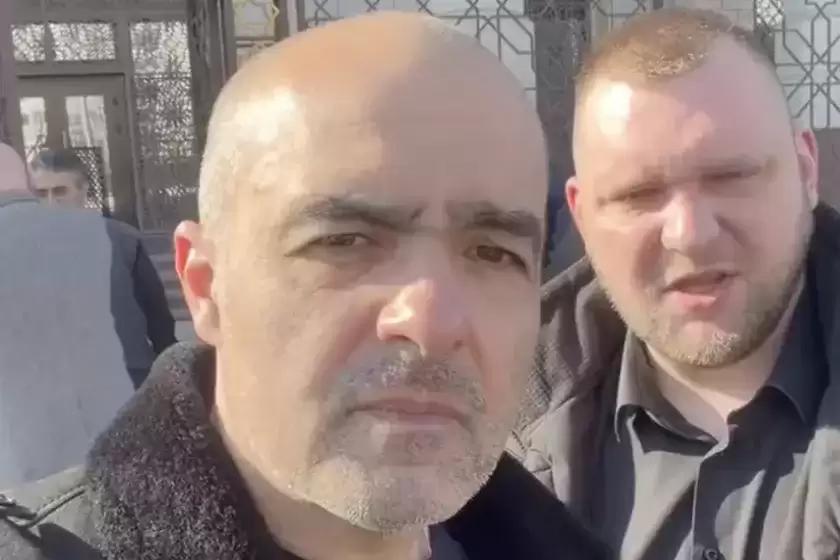 Олег Гайдукевич и Григорий Азаренок (справа) на пикете солидарности возле посольства Ирана в Минске. Скриншот из видео