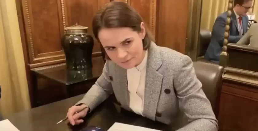 Светлана Тихановская во время разговора с Ангелой Меркель. Скриншот с видео