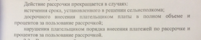 В этот день Петр узнал, что его участок был продан 14 июля 2015 г. в рассрочку, но сельсовет денег так и не получил, и в настоящий момент задолженность с учетом процентов по рассрочке и пени только за его участок составляет 146 тыс рублей, то есть выплатить чужую задолженность оказалось бы очень накладно. Что интересно — претензию о взыскании задолженности в досудебном порядке исполком направил не после первого или второго просроченного платежа, а через несколько месяцев после истечения всего срока рассрочки, в течение которых и прошли сделки — 23 ноября 2017 года. Почему? — вопрос, ведь по закону нарушения плательщиком порядка внесения платежей по рассрочке приводит к ее расторжению.