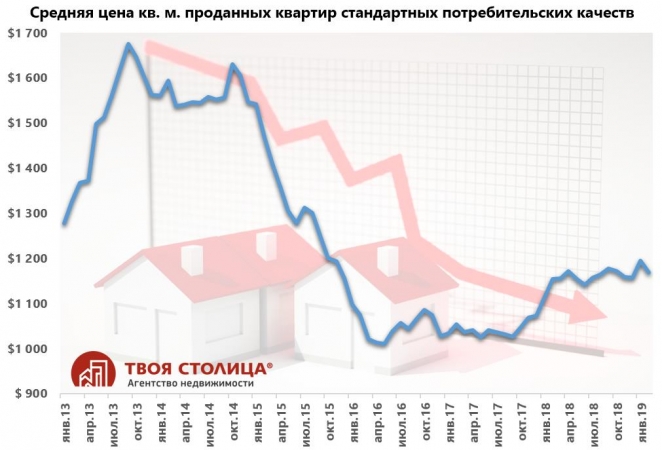 За полтора года "взлета" - с середины 2012 г. по конец 2013 г. - цена кв. м. столичных квартир выросла в среднем на $500+, в результате чего среднестатистическая однокомнатная квартира подорожала практически на $20 тыс., двухкомнатная практически на $17 тыс., трехкомнатная – на $12 тыс.