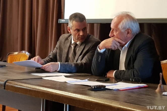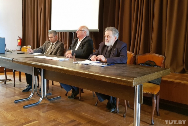 Слева направо: главный архитектор Минской области Вадим Николаенко, председатель Белорусского союза архитекторов Александр Корбут, зампред Белорусского союза архитекторов Михаил Гауфельд. Фото: Станислав Шаршуков, TUT.BY